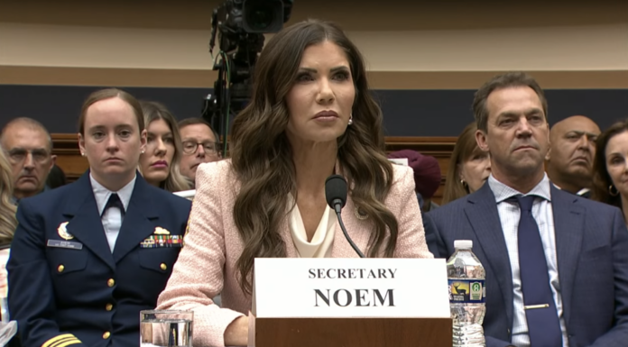 WATCH: Dem Rep confronts Kristi Noem about rumored fling while husband looks on