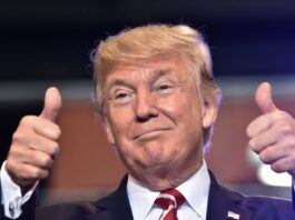 SEE IT: Trump wears ‘happy Trump’ pin alongside American flag